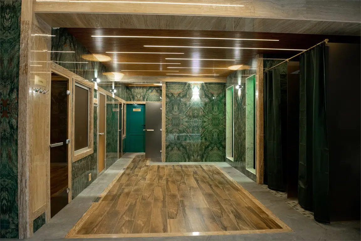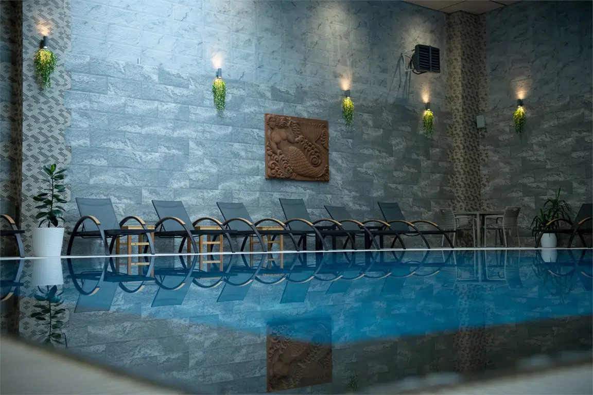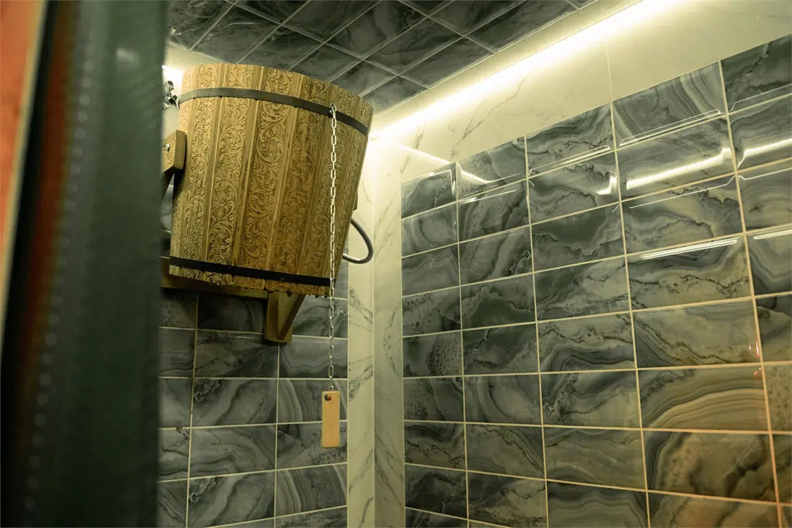 В Spa-зоне ( Бассейн, джакузи, сауна, хаммам, соляная комната, массажный душ, обливная бочка, фитобар ,кофе, чай, вода бесплатно)